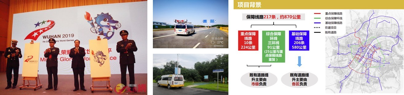 第七屆世界軍人運(yùn)動(dòng)會于2019年在武漢舉行,城建委負(fù)責(zé)武漢軍運(yùn)會保障線路路面整治相關(guān)導(dǎo)則和方案編制工作。路源檢測公司承擔(dān)10條重點(diǎn)保障線路、三環(huán)線綜合保障線路、基礎(chǔ)保障線路路面檢測及附屬設(shè)施調(diào)查服務(wù),合計(jì)單車道里程超過2000公里。