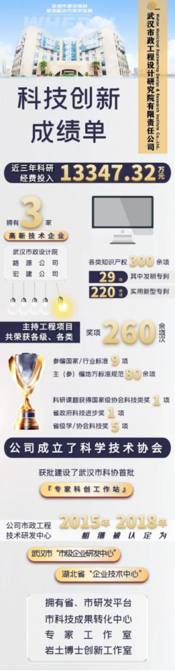 本次入選“科改示范企業(yè)”名單得益于武漢市政設(shè)計院多年來對科技創(chuàng)新工作的高度重視一起來看看我們的科技創(chuàng)新成績單。