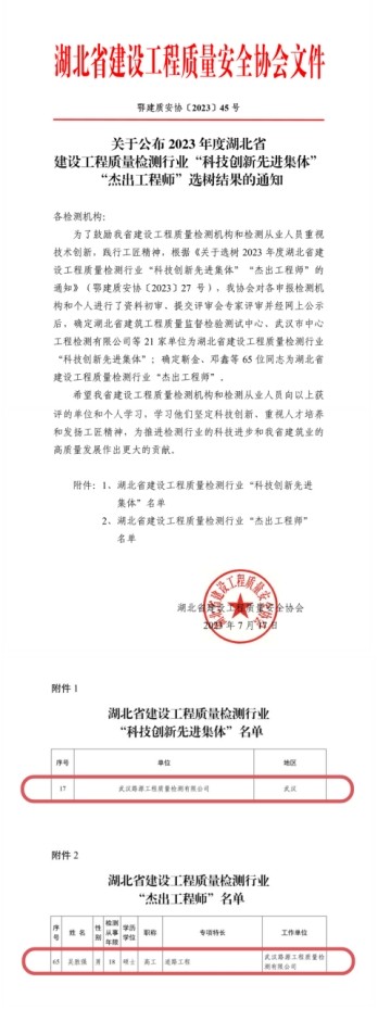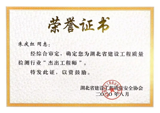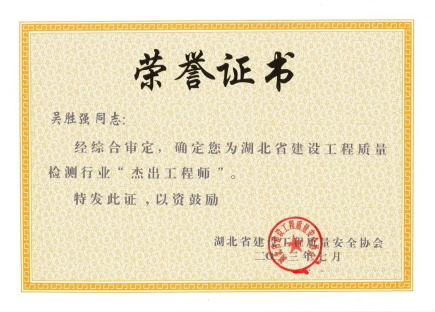 湖北省建設(shè)工程質(zhì)量檢測行業(yè)杰出工程師