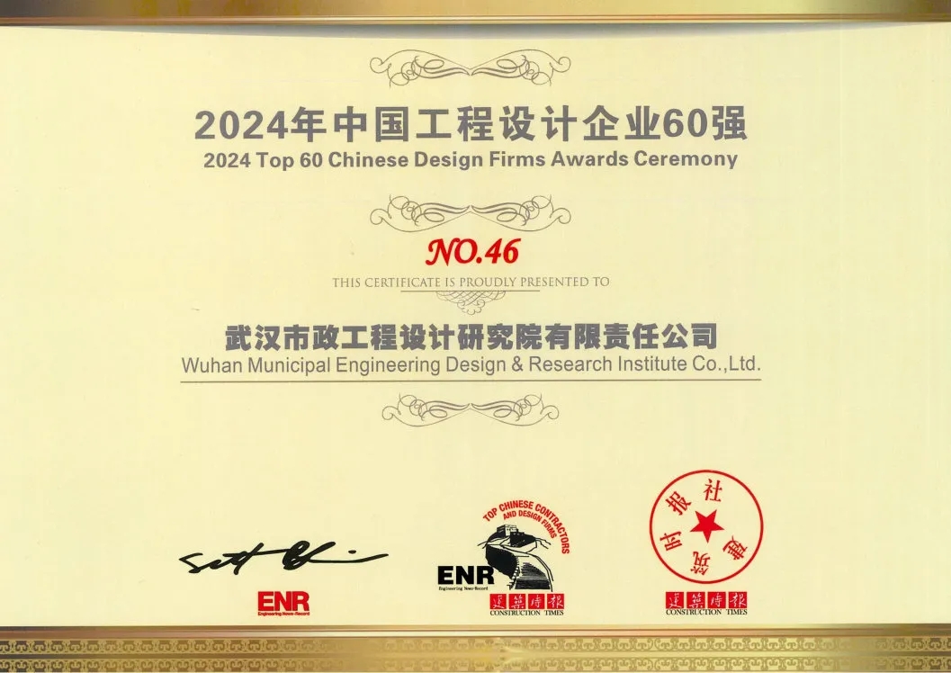 ? ? 近日,《建筑時報》和美國《工程新聞紀錄》(ENR)共同發(fā)布2024年度“中國承包商80強和工程設計企業(yè)60強”排名,武漢市政院榮膺“中國工程設計企業(yè)60強”稱號,排名第46位,位居武漢市屬設計企業(yè)第一名。