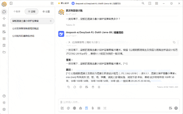 ? ? 目前,已在本地服務(wù)器上完成了DeepSeek-R1多版本模型的部署,并對部分本地知識數(shù)據(jù)進(jìn)行了向量化處理,全面開展效果測試。初步測試結(jié)果顯示,模型在管理知識問答、輔助設(shè)計(jì)方案等方面表現(xiàn)出色。基于大語言模型技術(shù)打造了企業(yè)級“數(shù)智顧問”,為道路巡檢管理平臺等智慧產(chǎn)品注入 AI 賦能,實(shí)現(xiàn)智能化升級,同時(shí)為員工提供制度、流程、操作規(guī)范的智能問答支持,提升設(shè)計(jì)管理整體效能。