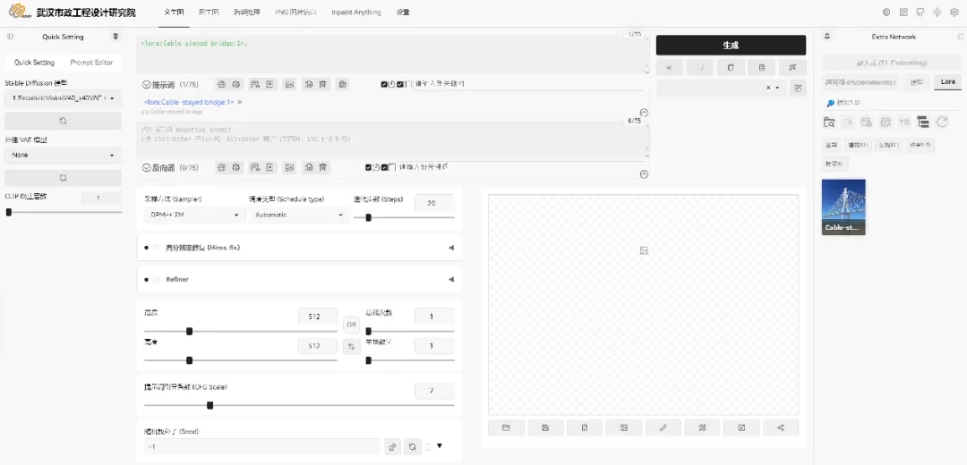 ? ? 武漢市政院在 AIGC 生成效果圖方案領(lǐng)域,通過深度學(xué)習(xí)算法優(yōu)化與專業(yè)圖像數(shù)據(jù)訓(xùn)練,搭建了市政工程效果圖方案自動(dòng)化生成平臺1.0版,構(gòu)建了路橋、建筑等專業(yè)圖像生成大模型的模型庫。平臺通過引入DeepSeek-R1 等前沿大語言模型,借助其強(qiáng)大的深度語義理解機(jī)制與多模態(tài)認(rèn)知能力,可解構(gòu)模糊設(shè)計(jì)意圖,自動(dòng)生成符合工程規(guī)范與藝術(shù)審美的精準(zhǔn)提示詞,突破傳統(tǒng)人工描述的主觀性與局限性;同時(shí),依托自定義節(jié)點(diǎn)技術(shù),成功開發(fā)并驗(yàn)證了多套一鍵生成效果圖的高效工作流,為設(shè)計(jì)團(tuán)隊(duì)提供了豐富的靈感和多元化的選擇。