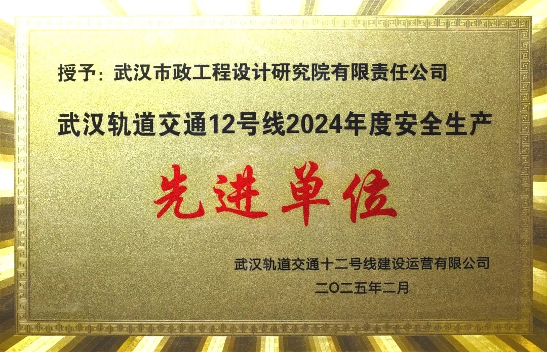 ? ? 初春擂鼓揚帆,前方捷報頻傳。近日,武漢市政院憑借在武漢軌道交通12號線安全生產(chǎn)領(lǐng)域的突出表現(xiàn),被武漢軌道交通十二號線建設(shè)運營有限公司授予“武漢軌道交通12號線2024年度安全生產(chǎn)先進單位”稱號。