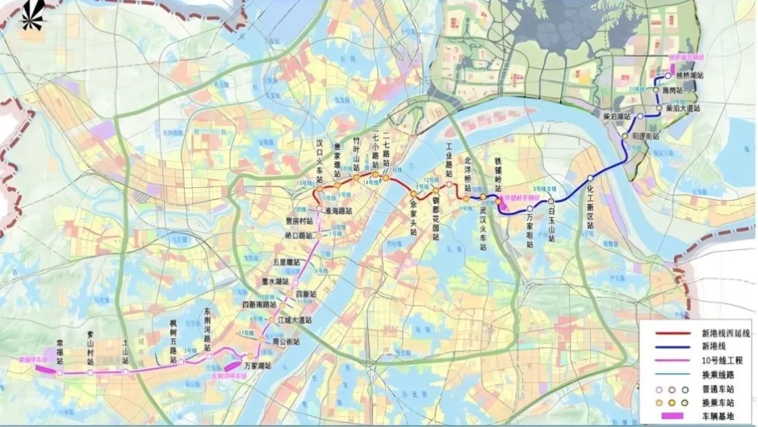 武漢市軌道交通新港線西延線工程線路走向示意圖