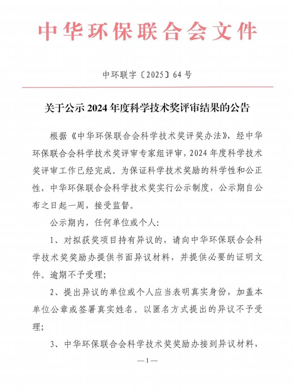 ? ? 中華環(huán)保聯(lián)合會是經(jīng)中華人民共和國國務(wù)院批準(zhǔn),民政部注冊,國家環(huán)保總局主管,由熱心環(huán)保事業(yè)的人士、企業(yè)、事業(yè)單位自愿結(jié)成的、非營利性的、全國性的社會組織。“中華環(huán)保聯(lián)合會科學(xué)技術(shù)獎”是在科技部正式備案的全國性獎項(xiàng)。