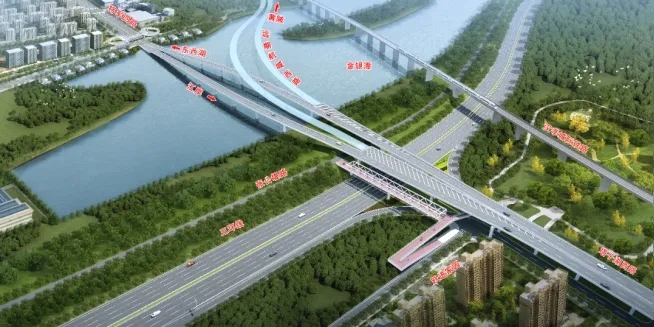 ? ? 根據(jù)項(xiàng)目邊界條件,橋梁工程采用差異化設(shè)計(jì)方案,針對(duì)不同路段特點(diǎn)進(jìn)行精細(xì)化設(shè)計(jì):跨黃潭湖深水區(qū)域段上部結(jié)構(gòu)采用預(yù)制鋼混組合梁,下部結(jié)構(gòu)采用高樁承臺(tái)配合吊箱圍堰施工,顯著提升施工效率;跨三環(huán)線采用86.6米大跨徑簡支鋼箱梁,跨徑位居國內(nèi)同類橋梁前列,并配套采用鋼-UHPC輕型組合橋面體系,有效提升結(jié)構(gòu)耐久性;陸地段選用預(yù)應(yīng)力混凝土結(jié)構(gòu),大幅降低建設(shè)成本。