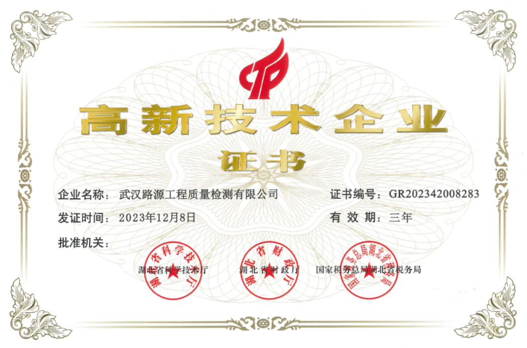 2023年,再次順利通過湖北省“高新技術(shù)企業(yè)”復(fù)審認定,這一成就充分展示了路源檢測公司在科技創(chuàng)新、科技研發(fā)、知識產(chǎn)權(quán)及產(chǎn)品服務(wù)等方面的綜合競爭力。