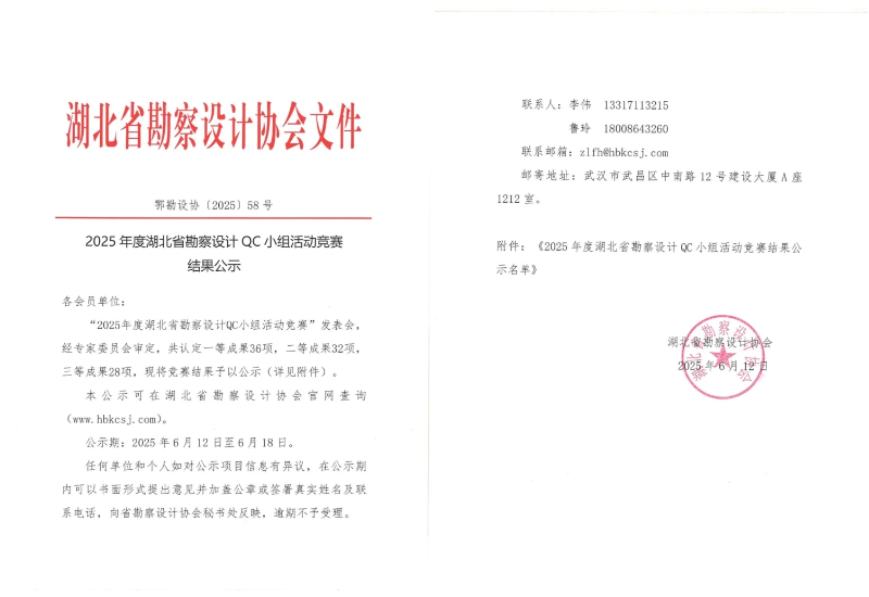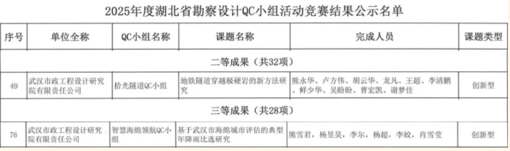 武漢市政院再傳捷報(bào)!近日,湖北省勘察設(shè)計(jì)協(xié)會組織召開的“2025 年度湖北省勘察設(shè)計(jì)QC小組活動競賽”中,武漢市政院選送的兩個(gè)QC小組表現(xiàn)亮眼:地空事業(yè)部"拾光隧道QC小組"憑借創(chuàng)新成果斬獲競賽二等獎,規(guī)劃研究事業(yè)部"智慧海綿領(lǐng)航QC小組"榮獲三等獎佳績。