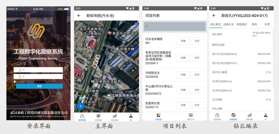 公司依托數(shù)字化轉(zhuǎn)型戰(zhàn)略,自主研發(fā)的市政工程數(shù)字化勘察系統(tǒng)實(shí)現(xiàn)全流程技術(shù)突破:外業(yè)定位、安全管控、測(cè)試記錄、編錄、巖芯拍照、數(shù)據(jù)上傳、外業(yè)監(jiān)管等全流程無紙化操作,既踐行綠色低碳理念,又讓勘測(cè)數(shù)據(jù)采集更高效精準(zhǔn),顯著提升勘察工作效能。