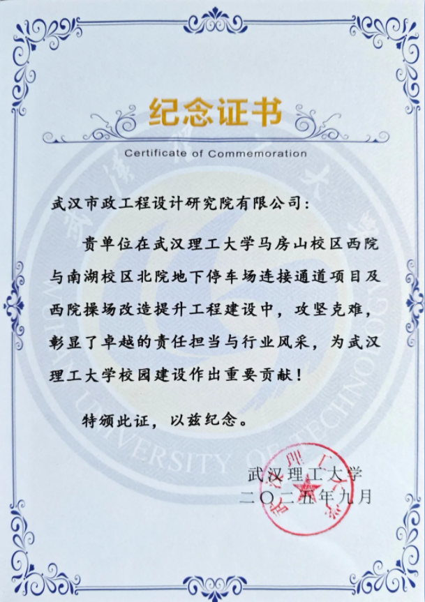 2025年9月6日上午,由武漢市政院設(shè)計的武漢理工大學(xué)馬房山校區(qū)西院與南湖校區(qū)北院地下停車場連接通道項目(以下簡稱“武漢理工大學(xué)地下通道”)通車儀式隆重舉行。洪山區(qū)區(qū)委區(qū)政府主要領(lǐng)導(dǎo)、武漢理工大學(xué)領(lǐng)導(dǎo)及各參建單位代表共同出席,見證這一重要時刻。儀式上,洪山區(qū)區(qū)委主要領(lǐng)導(dǎo)頒發(fā)“紀(jì)念證書”,表彰武漢市政院等參建單位在項目設(shè)計與實施過程中作出的重要貢獻。