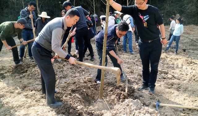 蔡輝為活動致辭,他肯定了此次植樹拓展活動的重要意義,希望大家在工作生活之余不要忘記承擔(dān)社會責(zé)任,并勉勵大家要在公司轉(zhuǎn)型發(fā)展時期展現(xiàn)出更加飽滿和積極向上的精神面貌。隨后,志愿者們拿起鋤頭、鐵鍬、水桶,在工作人員的指導(dǎo)下挖坑、植樹、培土、澆水、固定,將一棵棵樹苗植入土里。大家熱情高漲,你挖我栽,互相配合,30余棵樹苗已經(jīng)栽種完畢。大家合力豎立起“武漢市政工程設(shè)計院愛綠護綠植樹林”標(biāo)識牌,并與之合影留念。