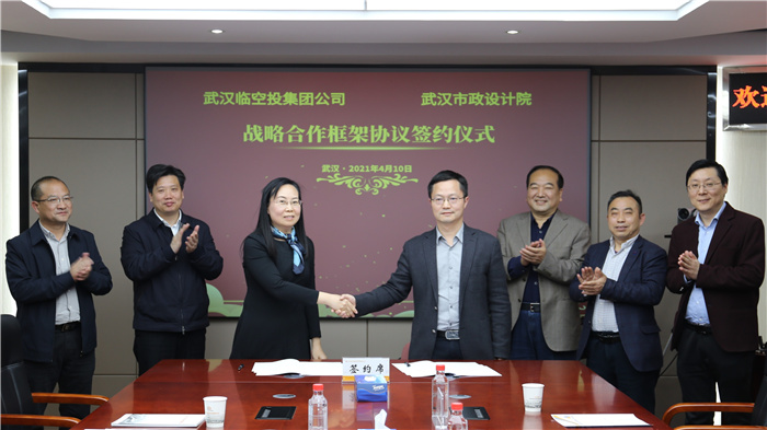 2021年4月10日,武漢市政設(shè)計院與武漢臨空經(jīng)濟(jì)區(qū)建設(shè)投資開發(fā)集團(tuán)有限公司在漢簽署戰(zhàn)略合作協(xié)議,雙方將依托各自的技術(shù)、資源等優(yōu)勢,在臨空經(jīng)濟(jì)區(qū)內(nèi)的市政項(xiàng)目整體策劃研究、環(huán)境治理等方面開展深度合作。武漢市政設(shè)計院董事長武興治、總經(jīng)理姚華、紀(jì)委書記談逢陽、副總經(jīng)理陳建斌,武漢臨空投集團(tuán)公司黨委書記、總經(jīng)理黃峰,副總經(jīng)理朱年正,副總工程師王瑩,以及雙方相關(guān)人員出席簽約儀式。