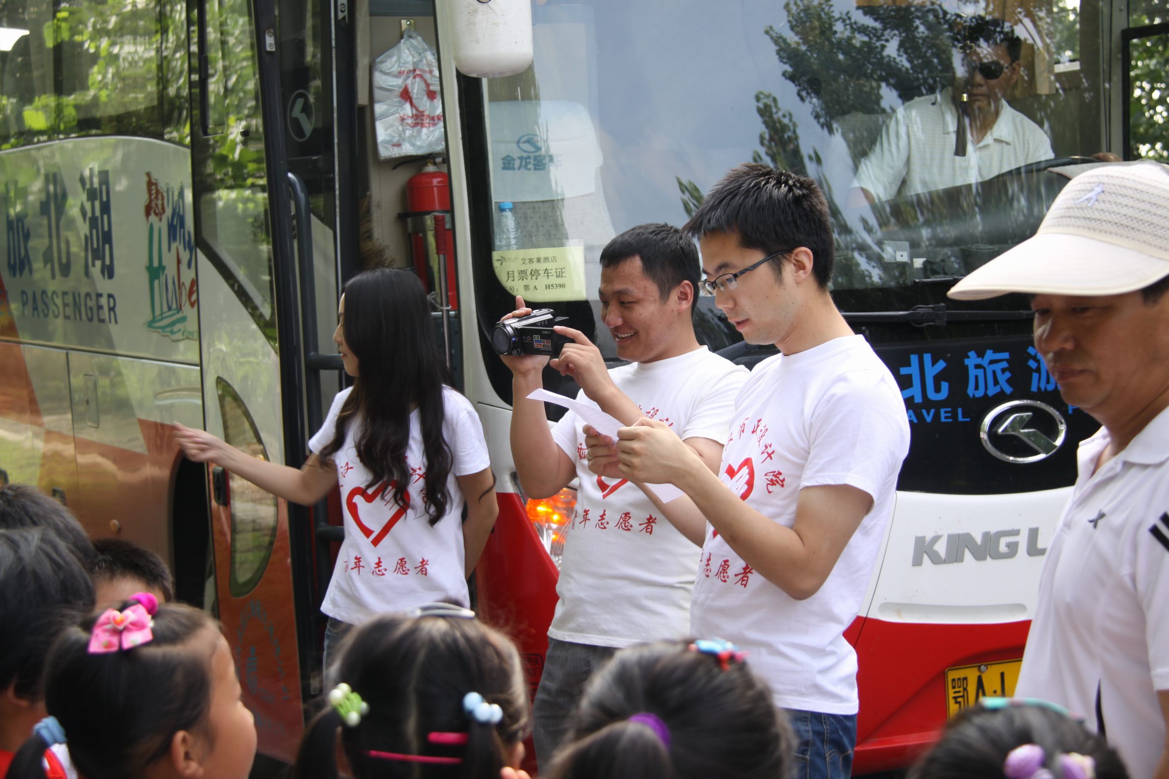 ??? 早上六點三十分,7名志愿者代表從公司出發(fā),赴李集小學(xué)迎接參加活動的學(xué)生及老師,受到了學(xué)生們的夾道歡迎。志愿者們?yōu)槊课粚W(xué)生送上飲料和遮陽帽,并為他們佩戴好印有自己名字的貼紙。