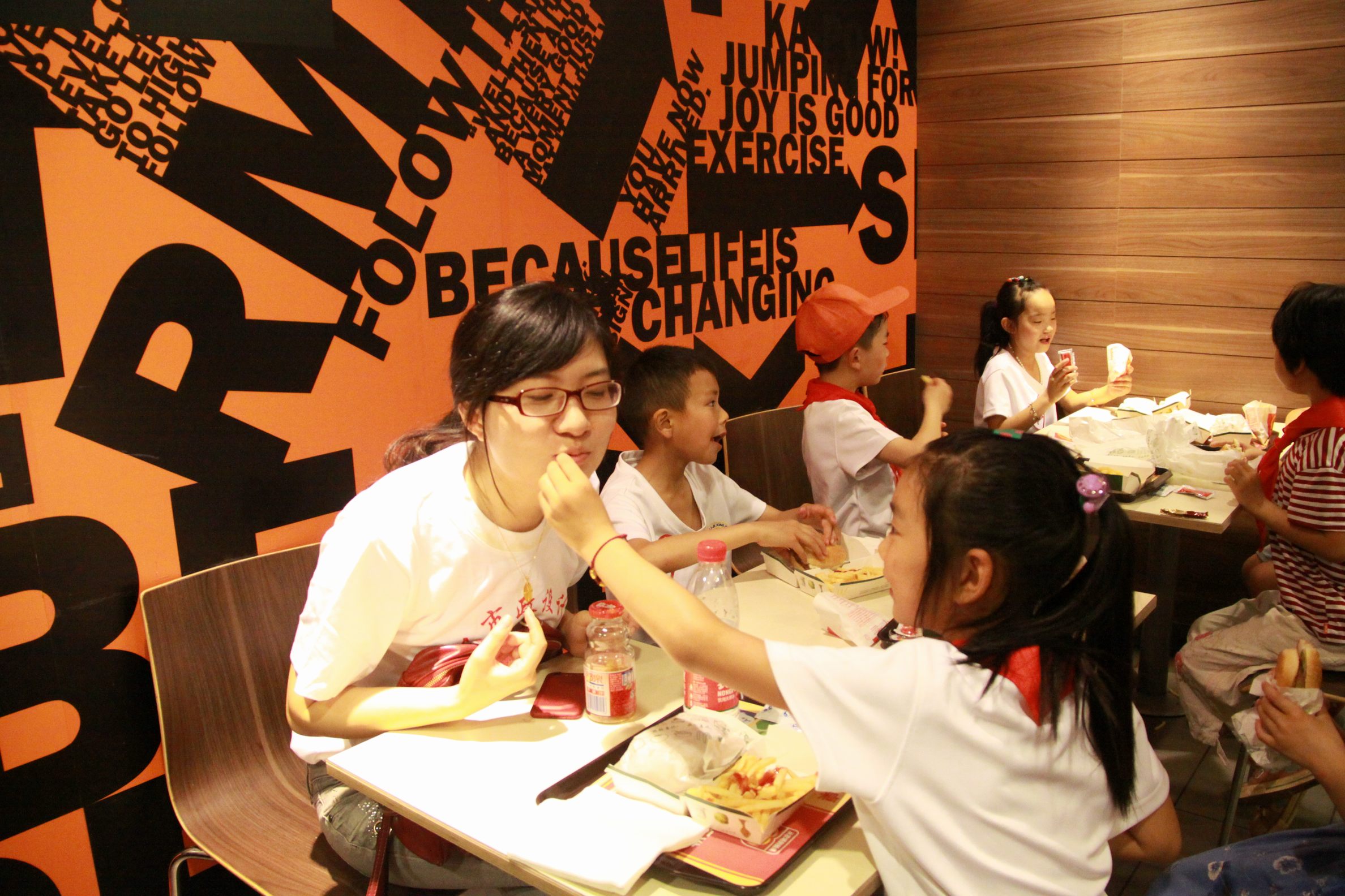 ??? 中午時分,孩子們乘車來到公司,公司黨委書記蔡輝、副總經(jīng)理趙世杰走出辦公樓歡迎師生們的到來,并與他們合影留念。隨后,志愿者與小朋友們一起來到麥當(dāng)勞餐廳共進午餐,餐廳游樂區(qū)的玩具引起了孩子們的極大興趣,他們上攀下爬,玩的不亦樂乎。