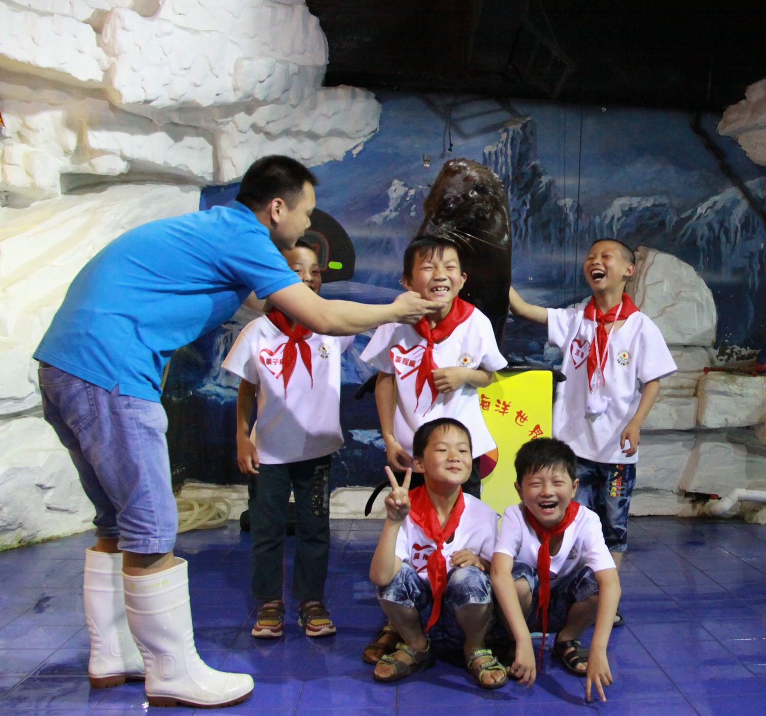 ??? 經(jīng)過短暫的休整,大家乘車來到東湖海洋世界進行參觀。剛一進館,孩子們就被一片神秘的海底世界所吸引了,他們趴在玻璃上欣賞著自己從沒見過的海洋動物,和喜歡的動物合影,穿過海底隧道時,時而出現(xiàn)的海洋動物都能讓他們發(fā)出一陣陣的驚嘆。美人魚表演和海豹表演更讓孩子們開心不已,他們不停的拍手鼓掌,并輪流和可愛的海豹合影。