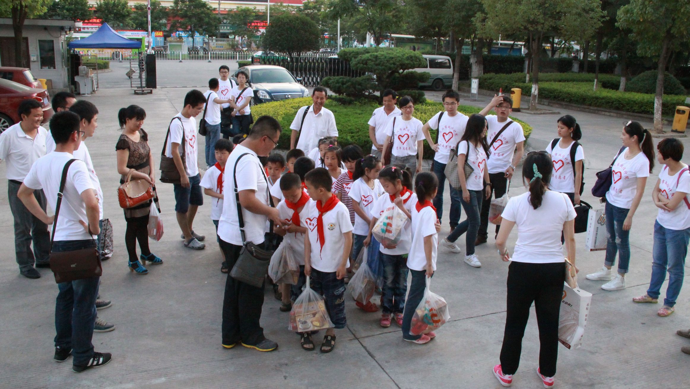 ??? 晚餐結(jié)束后,志愿者們與孩子們手拉手走出公司大門。志愿者隊長向李集小學(xué)領(lǐng)導(dǎo)贈送了文體用品,隊員們也為孩子們送上早已準備好的食品及小禮物,并送他們上車。告別的瞬間,隊員們向車上的孩子們揮手告別,目送車輛遠去,車上的孩子們也揮動著自己的小手,向公司志愿者們致意,為這次充實而難忘的活動畫上了圓滿的句號。