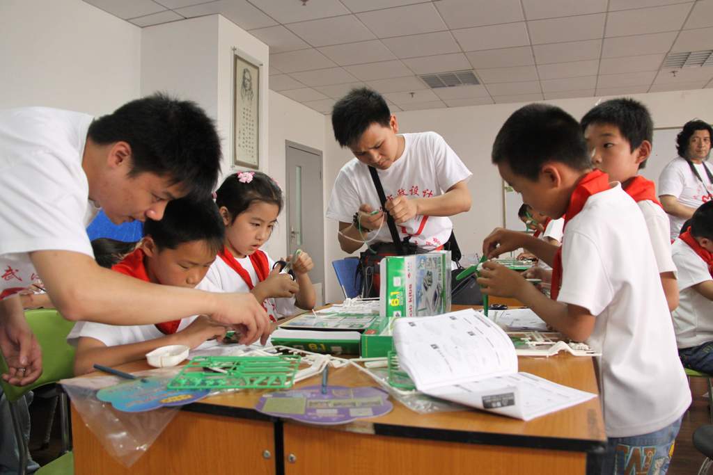 ??? 參觀場(chǎng)館后,孩子們來到了操作室,在老師的指導(dǎo)下組裝太陽能風(fēng)車,志愿者們也積極參與,幫助他們完成材料的拼接和粘貼。很快,太陽能風(fēng)車就拼裝好了,孩子們面對(duì)著自己的勞動(dòng)成果,露出了開心的笑容。在隨后的活動(dòng)中,孩子們還觀看了4D電影,如臨現(xiàn)場(chǎng)的真實(shí)感受,也讓孩子們倍感新奇。