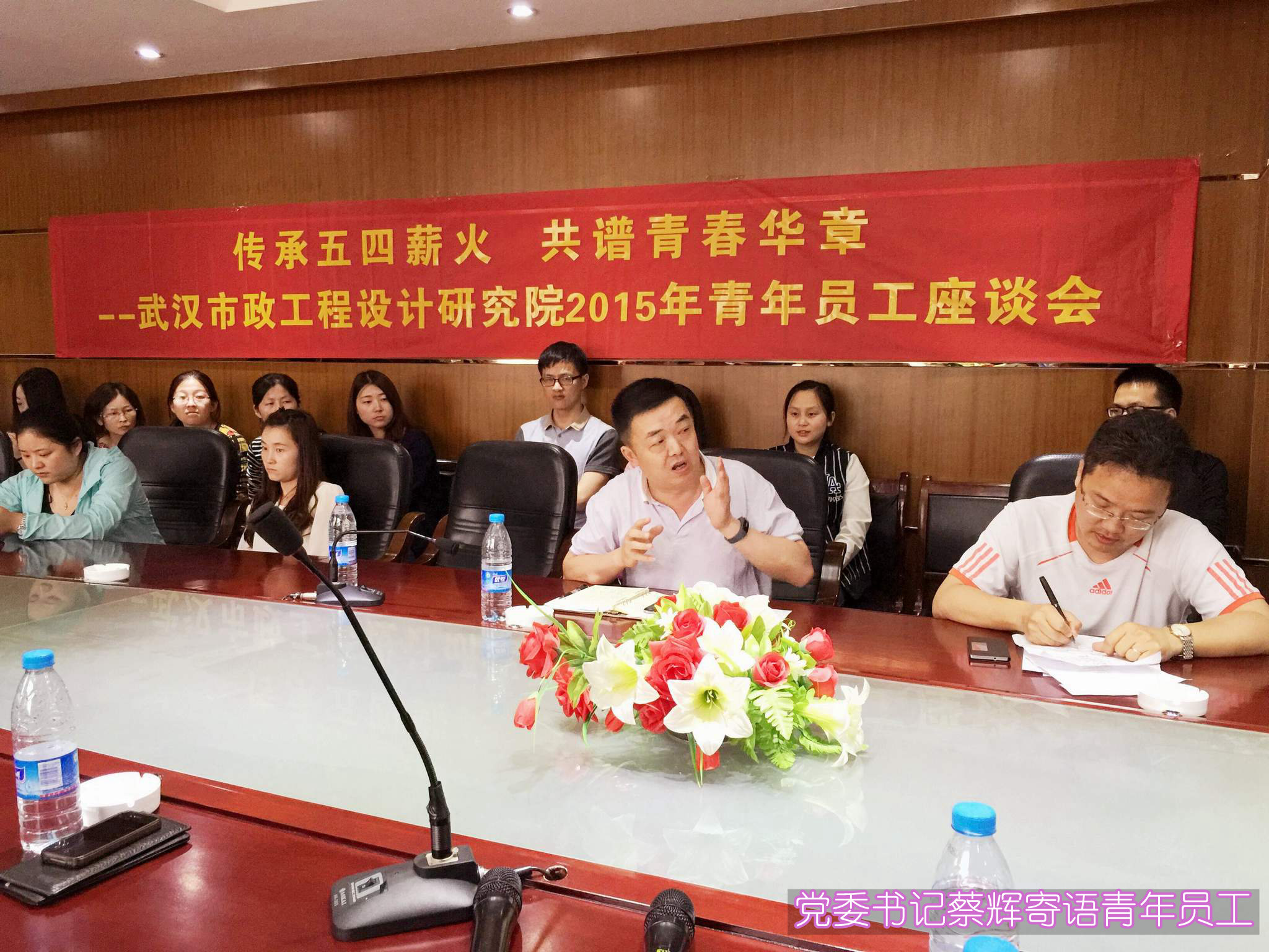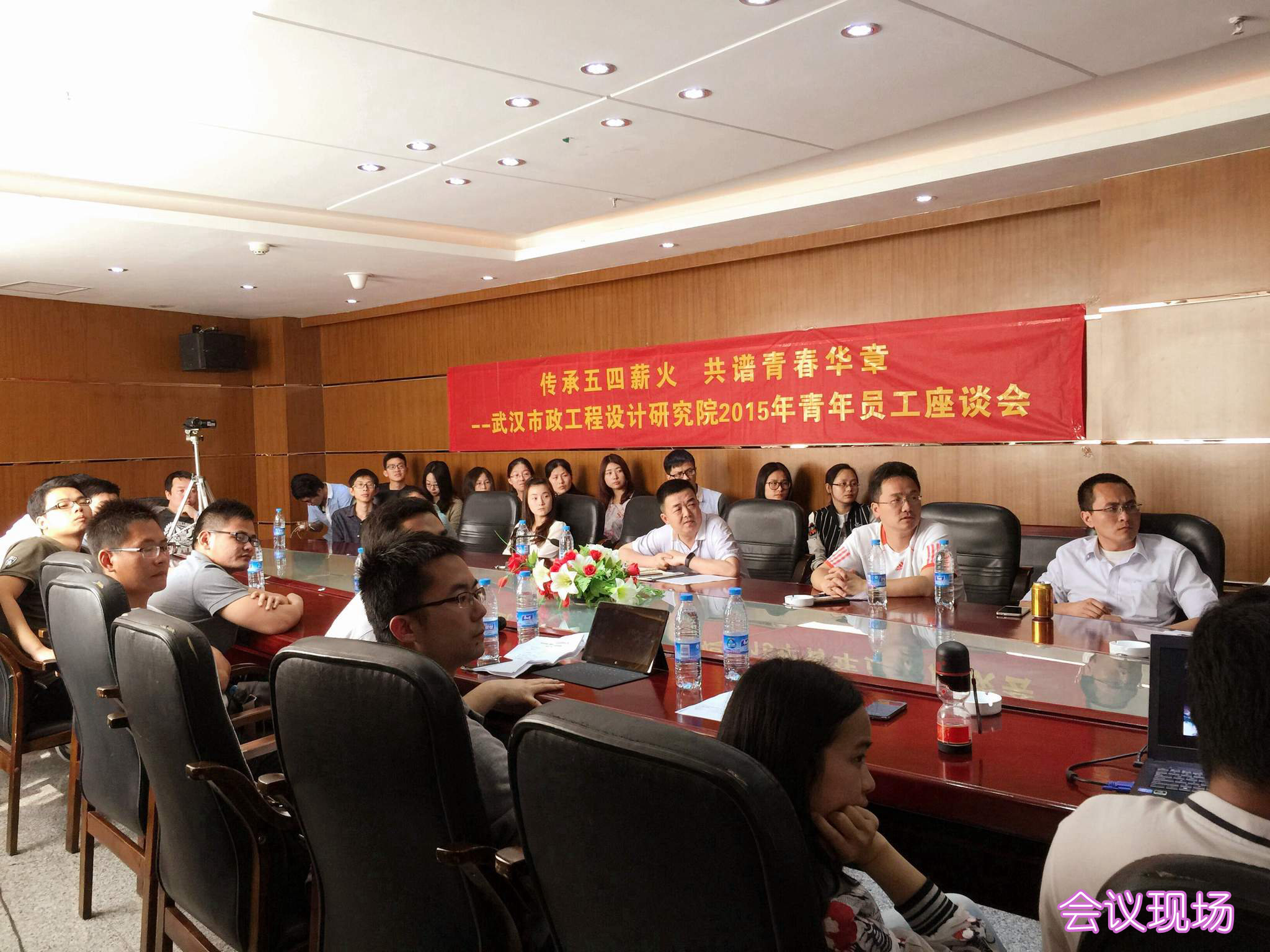 ??? 5月8日下午,一場以“傳承五四薪火,共譜青春華章”為主題的青年員工座談會如期舉行,公司黨委書記蔡輝、綜合辦公室副主任呂擁軍與公司青年員工圍坐在一起,傾聽青年員工的心聲,感受青年員工思想的碰撞。
