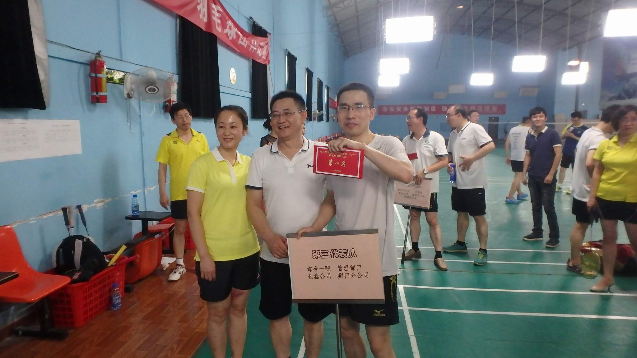 ??? 經(jīng)過三個小時激烈角逐,比賽全部結(jié)束。而富有戲劇性的是,有三支隊伍各勝了兩場,積分相同。在這種情況下,裁判組通過統(tǒng)計每隊勝場及勝負關(guān)系,由黨委書記蔡輝領(lǐng)銜、由綜合一院、管理部門、長鑫公司、荊門分公司聯(lián)合組成的第三代表隊獲得了最終的冠軍。