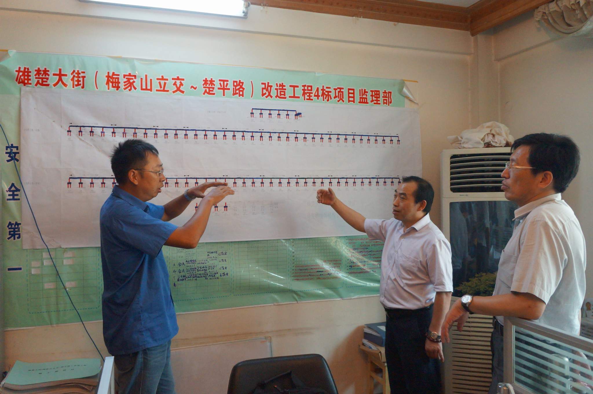 ??? 8月5日,公司總經(jīng)理姚華、副總經(jīng)理趙世杰帶領(lǐng)綜合辦公室、監(jiān)理公司、勘測(cè)設(shè)計(jì)院等部門(mén)負(fù)責(zé)人,對(duì)部分工地進(jìn)行了走訪慰問(wèn),為高溫下堅(jiān)持工作的一線員工送上一份清涼。