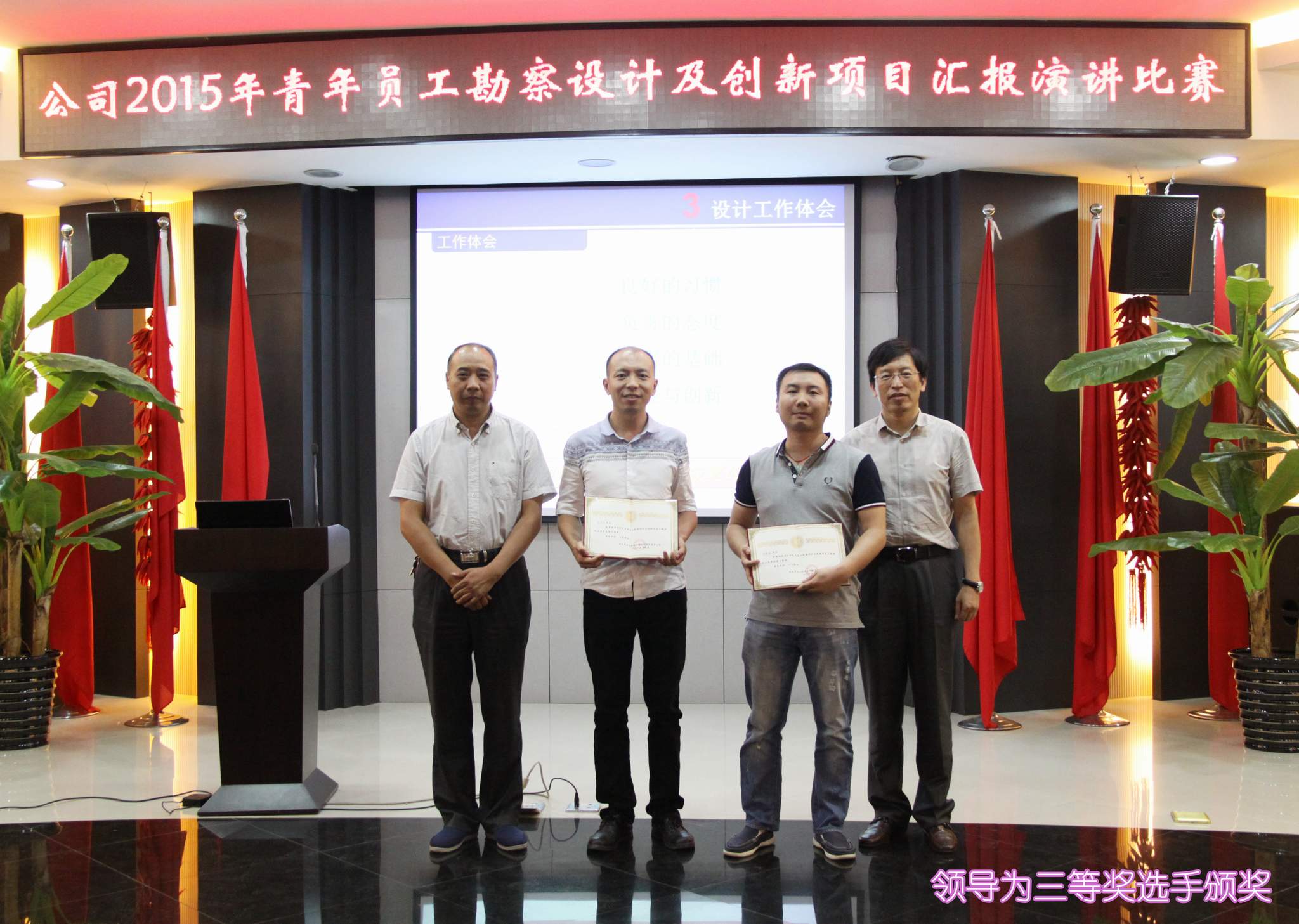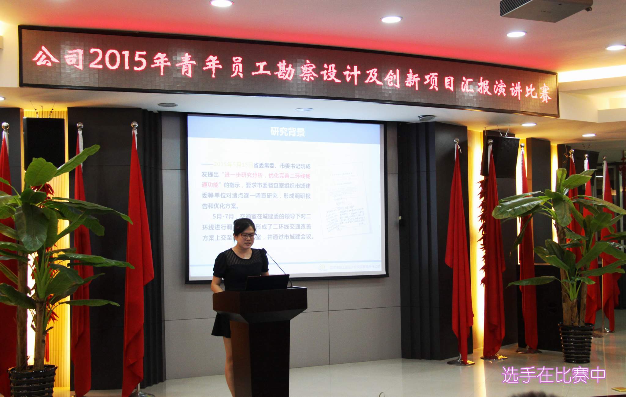 ??? 9月1日,一場(chǎng)以“創(chuàng)新”為主題的勘察設(shè)計(jì)及創(chuàng)新項(xiàng)目匯報(bào)演講比賽在公司二樓會(huì)議室隆重舉行。參加本次演講比賽的9位青年員工從各部門(mén)、各專(zhuān)業(yè)的精心選拔中脫穎而出,具備了一定的技術(shù)能力和演講水平,是青年員工中的佼佼者。 本次比賽吸引了近百名員工參加,由6名評(píng)委組成的評(píng)委會(huì)將根據(jù)演講人的綜合表現(xiàn)進(jìn)行評(píng)分,并以此為依據(jù)確定名次。公司領(lǐng)導(dǎo)、相關(guān)部門(mén)負(fù)責(zé)人出席了本次活動(dòng)。