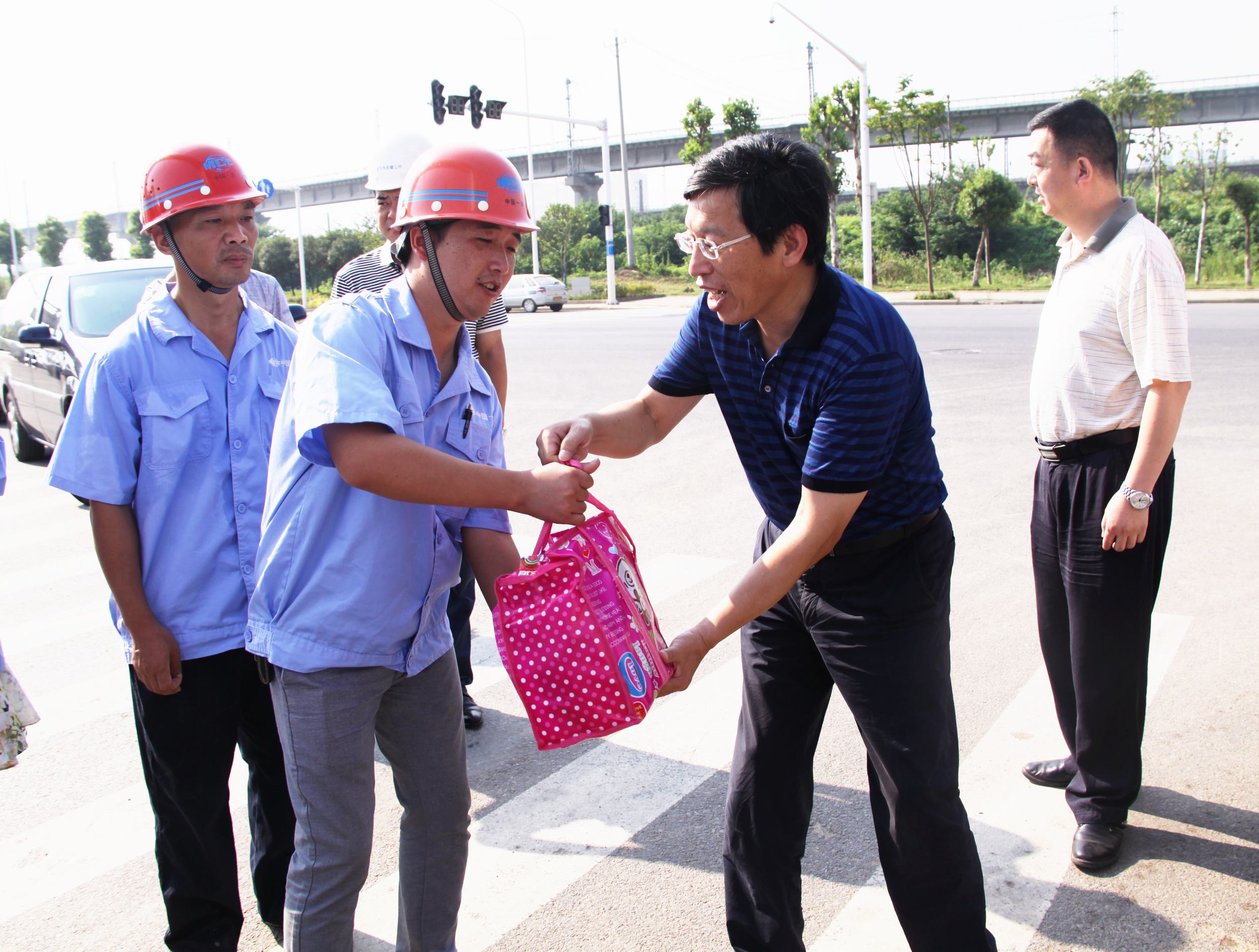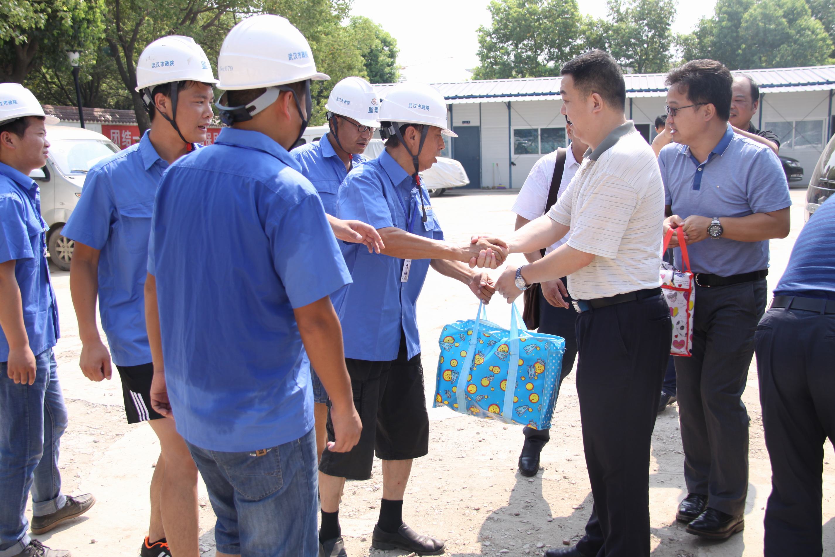 ??? 蔡輝書記一行先后來到城華路、漢陽海綿城市示范區(qū)、黃家湖污水處理廠等工地現(xiàn)場,為堅(jiān)守在現(xiàn)場的員工們送上消暑慰問品。公司領(lǐng)導(dǎo)聽取了現(xiàn)場負(fù)責(zé)人的工作情況匯報(bào),詳細(xì)詢問了員工們的工作和生活情況,并叮囑他們注意高溫天氣下的工作安全。同時(shí)要求相關(guān)部門負(fù)責(zé)人合理安排工作時(shí)間,做好人員調(diào)配,制定防暑降溫工作預(yù)案,保證一線員工的身體健康。