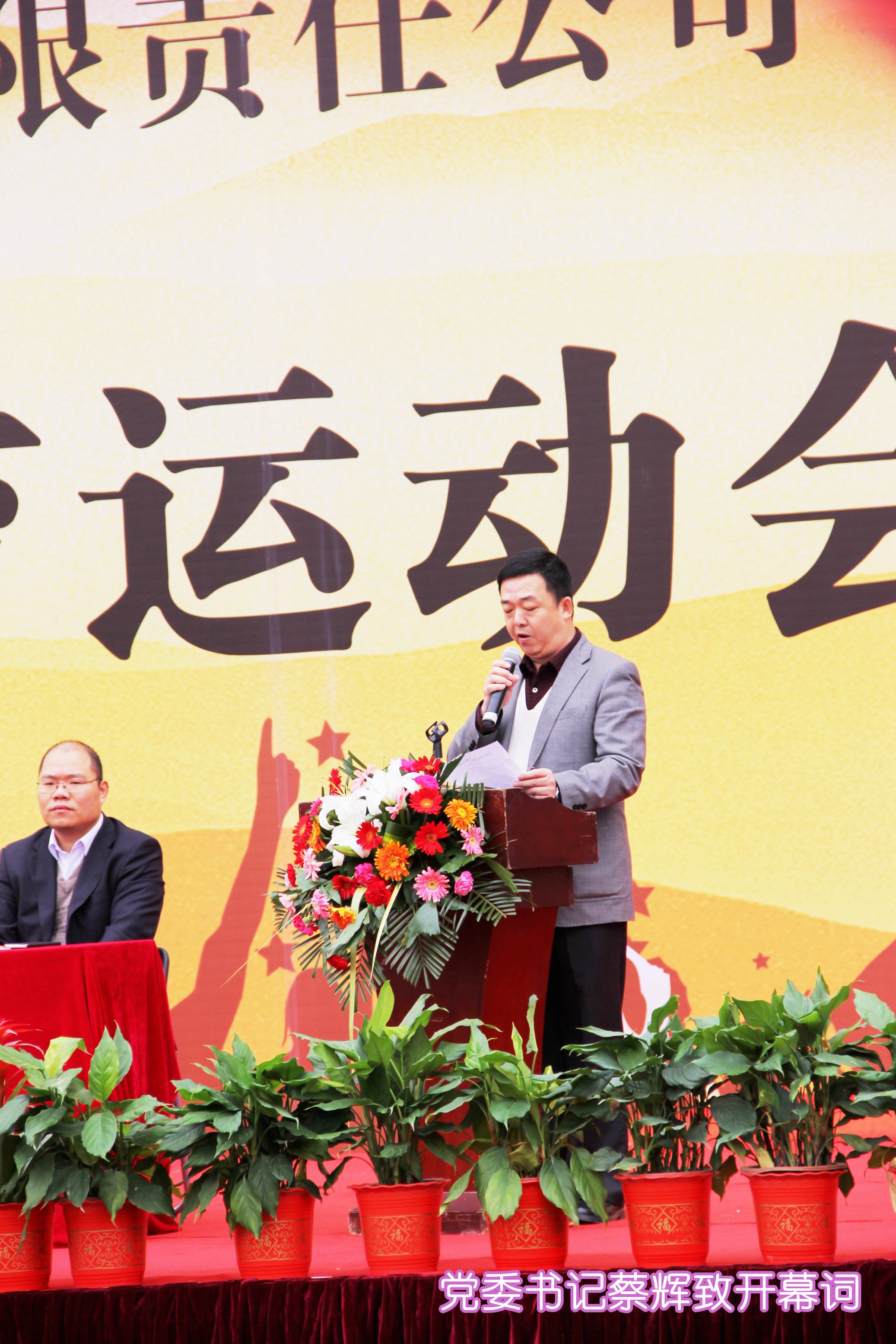 ??? 黨委書記蔡輝同志致開幕詞,他充分肯定了體育文化建設對公司各項工作的積極促進作用,并希望廣大運動員發(fā)揚“頑強拼搏,勇爭第一”的精神,以飽滿的情緒、激昂的斗志、團結向上的精神投入到比賽中,超越自我,勇創(chuàng)佳績。