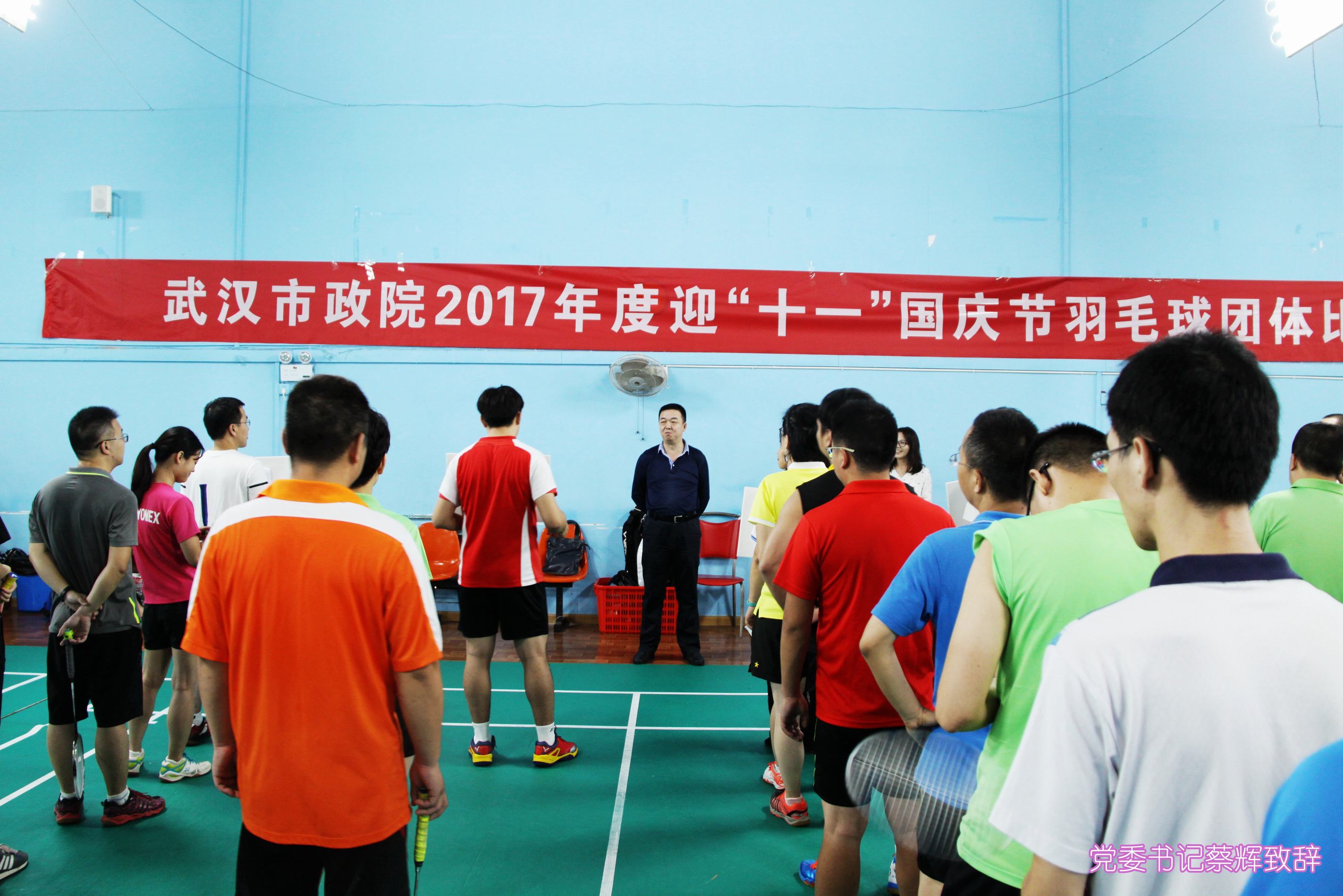 ??? 9月29日下午,公司在武漢CBD羽毛球館舉行“迎十一”國慶節(jié)羽毛球比賽,用這種獨特的方式慶祝偉大祖國的68歲華誕,共有40余名隊員報名參賽,黨委書記蔡輝在賽前致辭并宣布比賽開始。