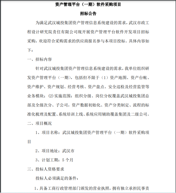 資產(chǎn)管理平臺(一期)軟件采購項目 招標公告