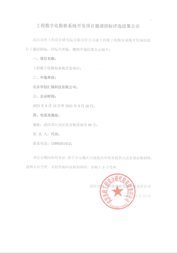工程數(shù)字化勘察系統(tǒng)開發(fā)項(xiàng)目邀請(qǐng)招標(biāo)評(píng)選結(jié)果公示